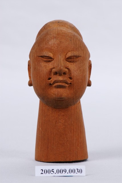 本件保存良好,為布袋戲角色鬚文之戲偶頭,偶之特徵為嘴唇上方兩撇明顯的點八字鬍,臉型圓潤,雙下巴。