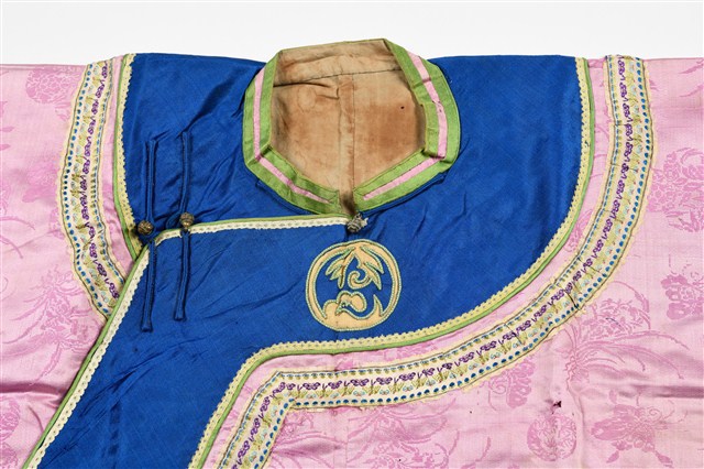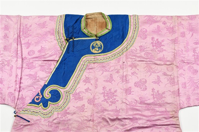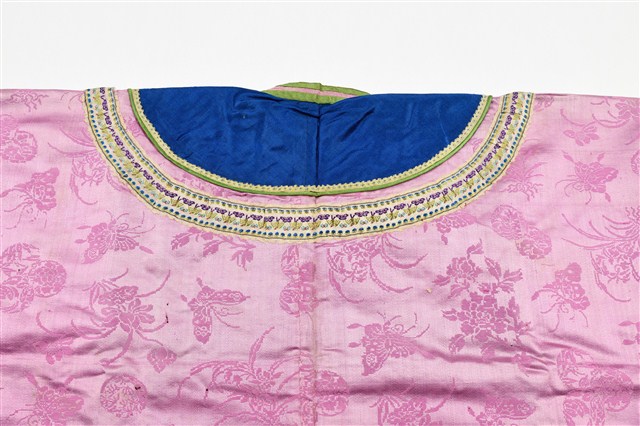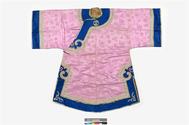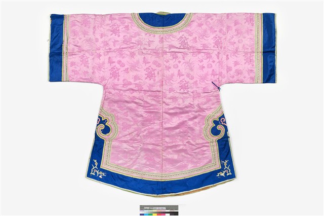 2005.010.0012 粉紅絲質緹花大襟鑲緄女衫