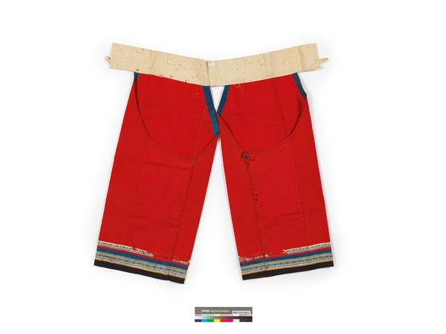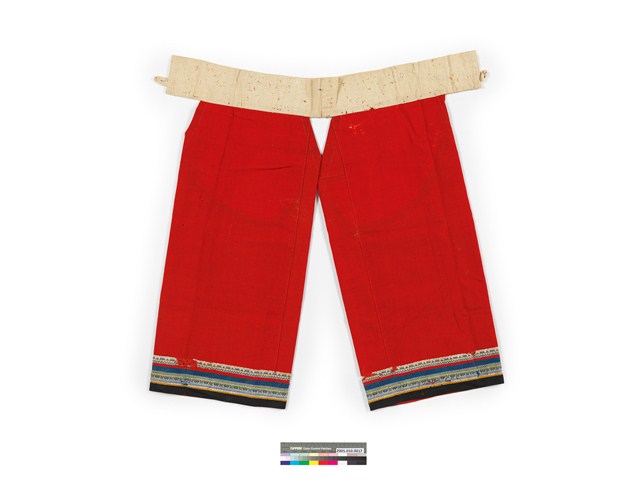 2005.010.0017 大紅棉地條紋織帶飾邊女套褲