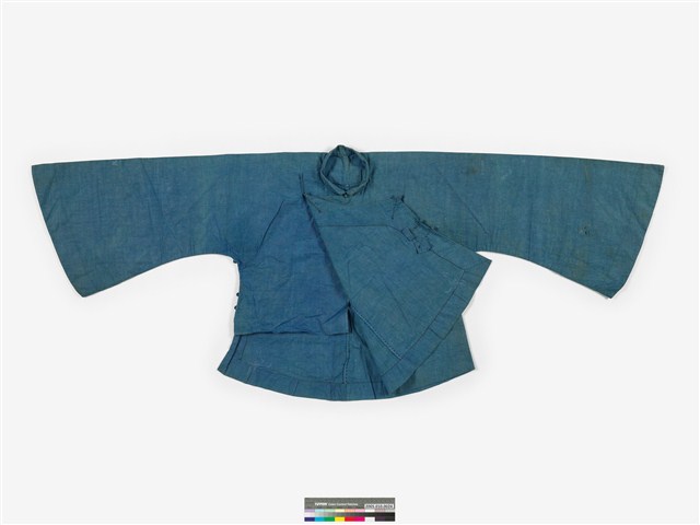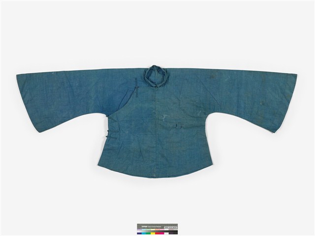 2005.010.0024 藍棉質大襟喇叭袖女衫