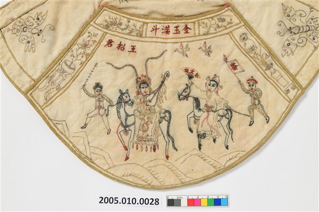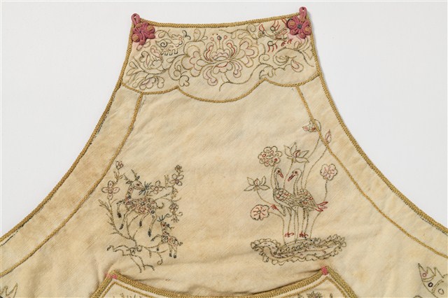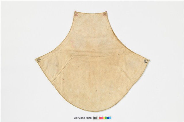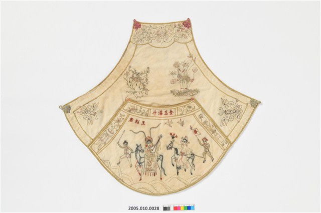 2005.010.0028 米米白地彩秀花草人物紋下端寬形肚兜