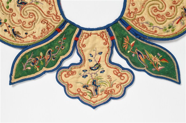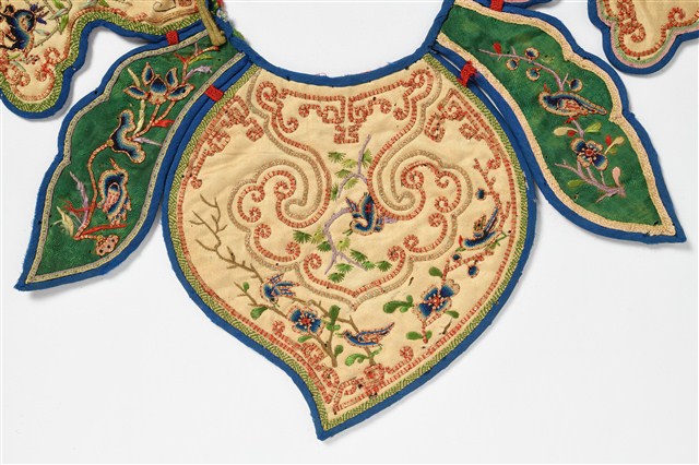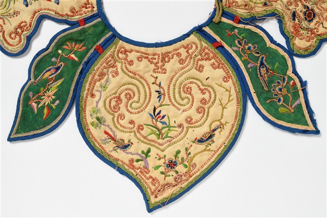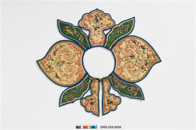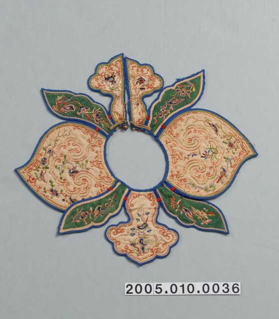 2005.010.0036 雙色絲緞桃形彩繡雲肩