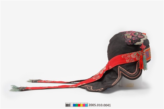 2005.010.0041 黑地蝴蝶紋刺繡風帽