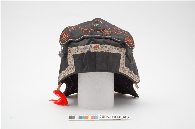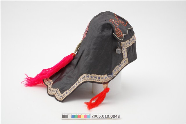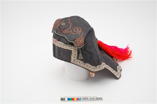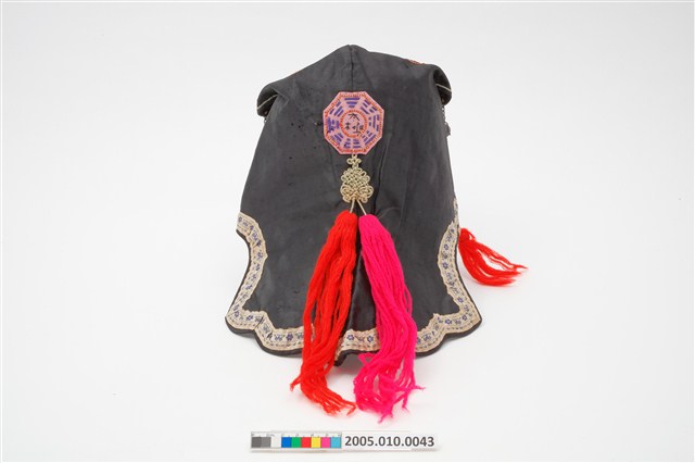 2005.010.0043 黑地太極八卦紋刺繡風帽