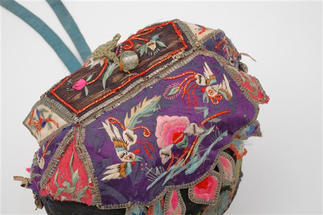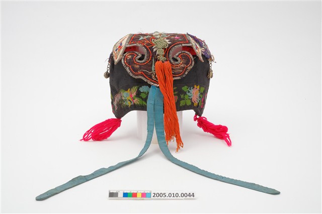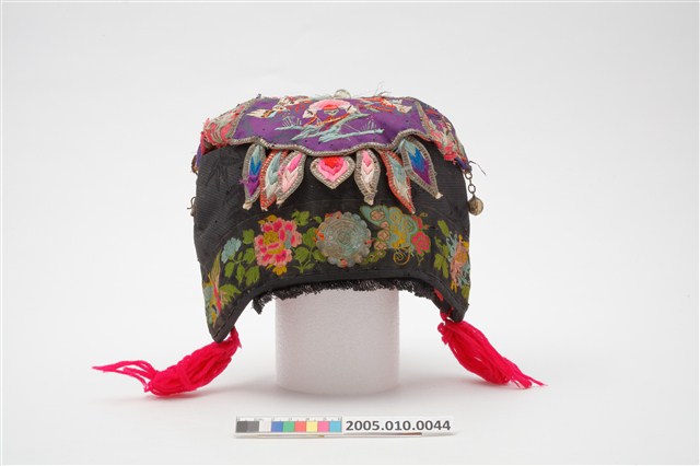 2005.010.0044 黑地青銅帽花花卉紋刺繡狀元帽