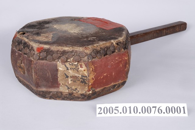 本件為手鼓,六角形的雙面鼓,裝有把柄可供持握。鼓面長久使用而污黑,鼓面旗一面上方有破洞,下方貼紅布。鼓身貼福順宮諸神聖之符令。手鼓又稱為角鼓,使用在需要移動的宗教儀式中。臺灣的靈寶派烏頭道士、正一派紅頭道士與釋教法師的儀式皆使用頻繁,更是法派法師與小法團的主要樂器。
