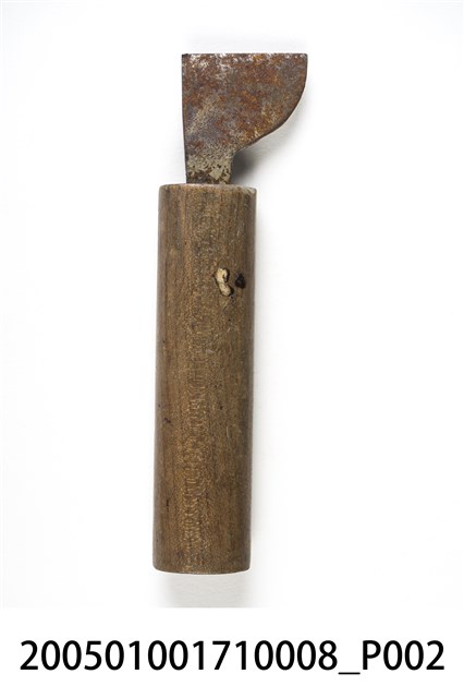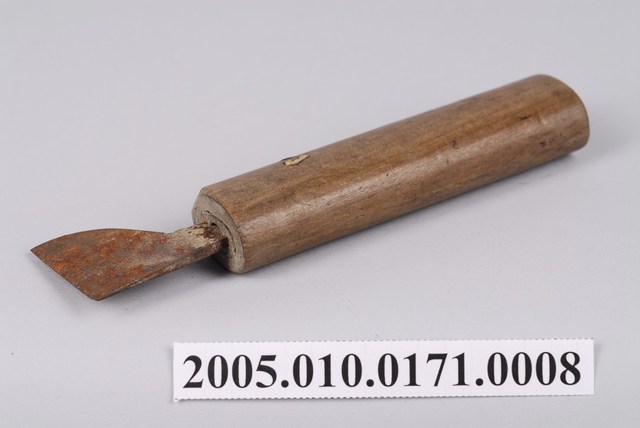 1.本物件為一把木製握柄的平刃裁皮刀,是製鞋用於裁切、削薄皮革以及裁剪底邊時使用,配合製作的內容,有各種不同刀刃寬度種類。