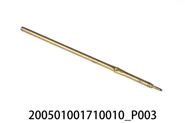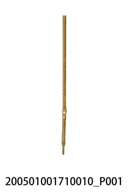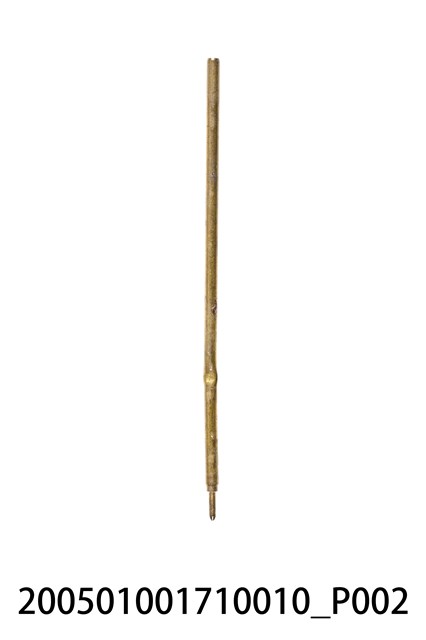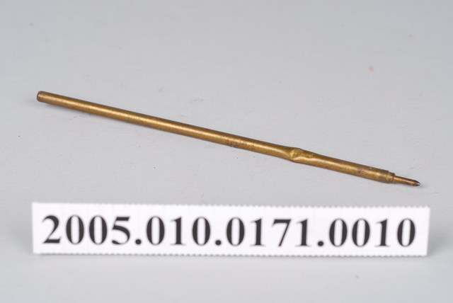 1.本物件為金屬製的銅管銀筆,中間筆管略有凹陷,是製鞋時將紙板轉繪到皮革上,直接在皮革上標記號時使用。