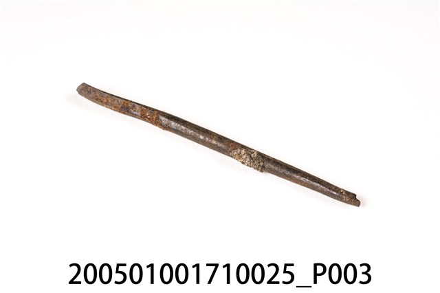 1.本物件為金屬直鉤針,會安裝在錐子上使用,是鞋匠製鞋、補鞋用來刺出鞋底縫線孔的工具。