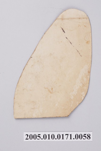 1.本物件是根據鞋款設計,繪製而成的平面紙板,紙板上註記有客戶資訊:「謝金來」、「基隆市信二路正義巷2-5号」。利用紙板可在皮革上轉繪出鞋面各部位形狀,再進行裁剪、削薄加工、組合,進而製作鞋面。