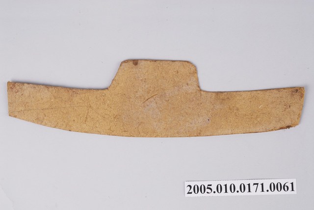 1.本物件是根據鞋款設計,繪製而成的平面紙板,利用紙板可在皮革上轉繪出鞋面各部位形狀,再進行裁剪、削薄加工、組合,進而製作鞋面。