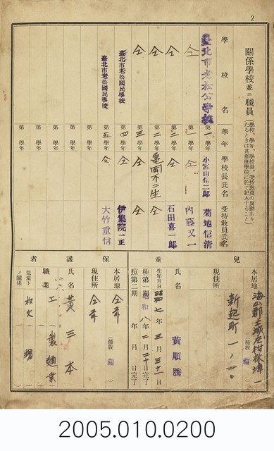 2005.010.0200 黃順騰老松公學校家庭通信簿