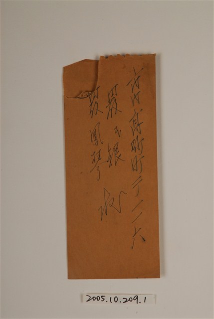本文物為臺南醫院看護婦、助產士講習所上課通知單信封,信封正面寫著收件人與地址,背面則寫「臺南醫院」。由臺南醫院看護婦、助產士講習所寄給嚴鳳琴的書信,時間是4月10日,內容為當院看護婦、助產士講習所的上課通知,當天需要繳交教科書費用,共七円八十錢。