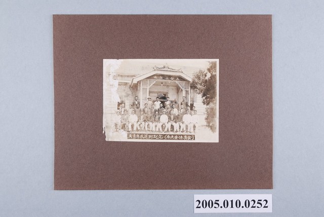 1.本物件為黃卿送別紀念合影,照片上有28人,拍攝地點在大安庄役場前,第一排的人均坐著,底下有「黃青年氏送別記念(南大安体會)」字樣。 2.黃卿生於明治31年(1898)2月10日,其父黃煥然為日治時期壯丁團團長,大正9年(1920)執教於大安公學校,戰後成為首任大安國小校長。