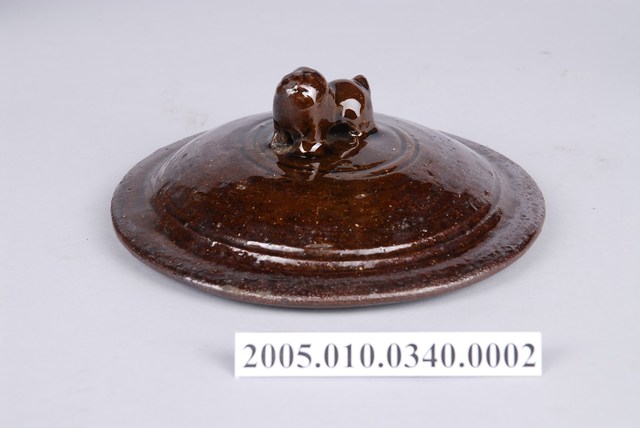 帶紐笠式平沿蓋,蓋紐做回首坐臥獅形紐。與2005.010.0337.0001配套。