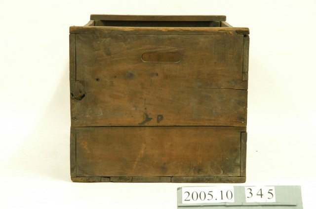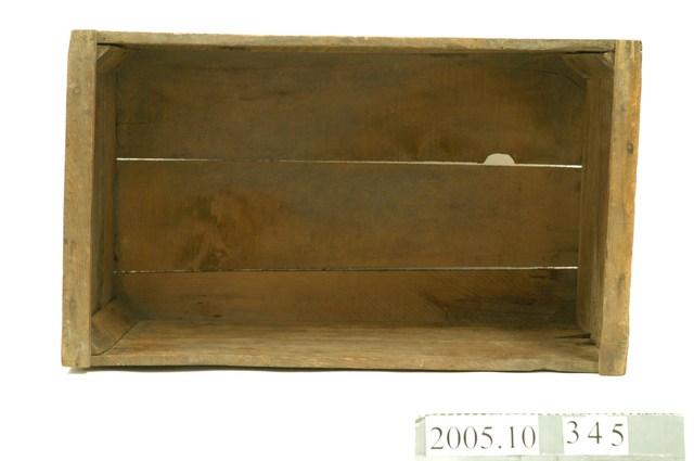 1.本物件為臺北州柑橘同業組合木箱,整體為木質,為木板拼接製成,頂端無蓋,其中一側印有「台北州柑橘同業組合」字樣。