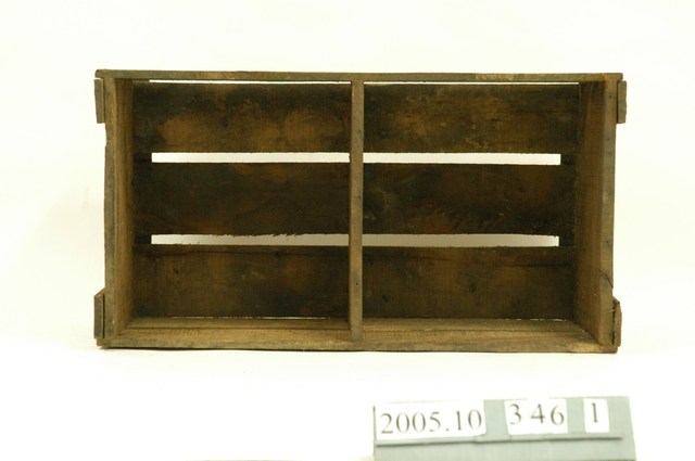 1.本物件為運送臺灣產桶柑之木箱,為木材拼裝製成,整體為長方形木籃,內側有一個隔板,木箱外部有「運往新加坡」、「中華民國台湾產桶柑」字樣,另一側印有字樣但已模糊,僅能辨識「台北」、「合作社」。
