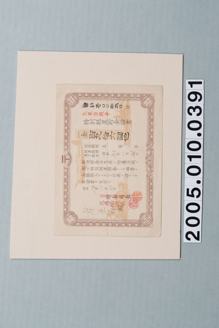 2005.010.0391 大東亞戰爭特別据置貯金證書