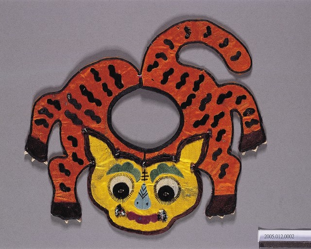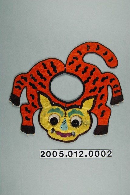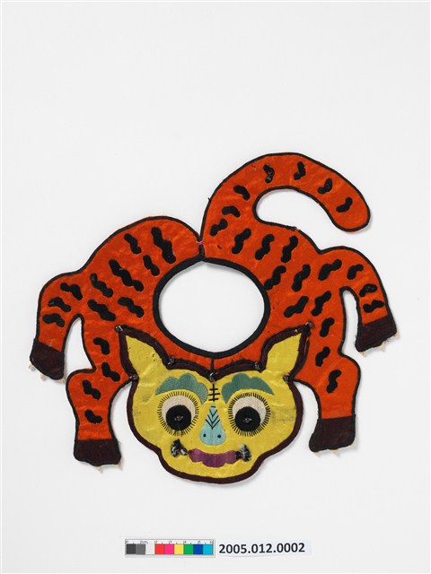 2005.012.0002 雙色絲緞虎形彩繡圍涎