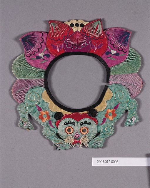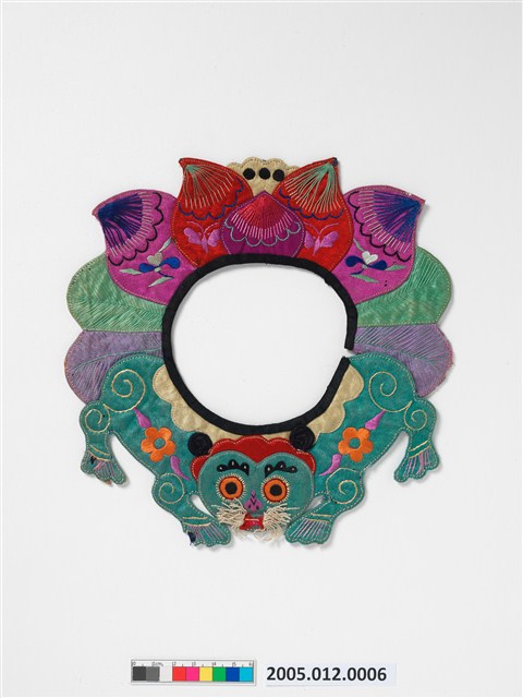 2005.012.0006 多色絲緞蓮獅彩繡圍涎