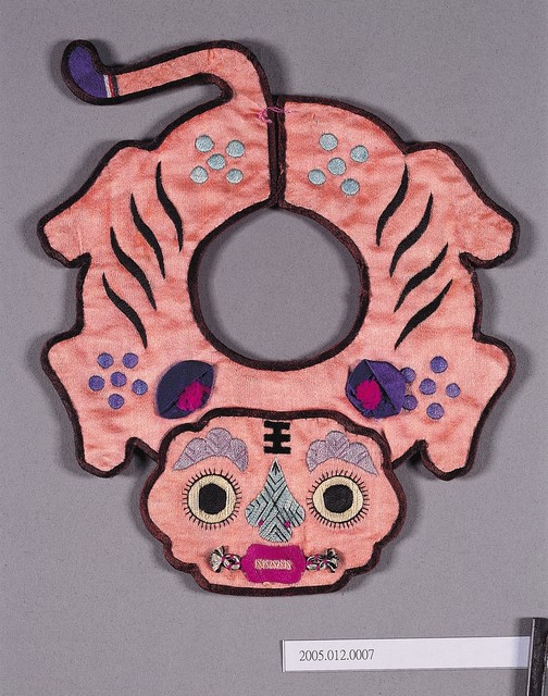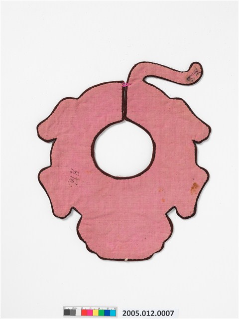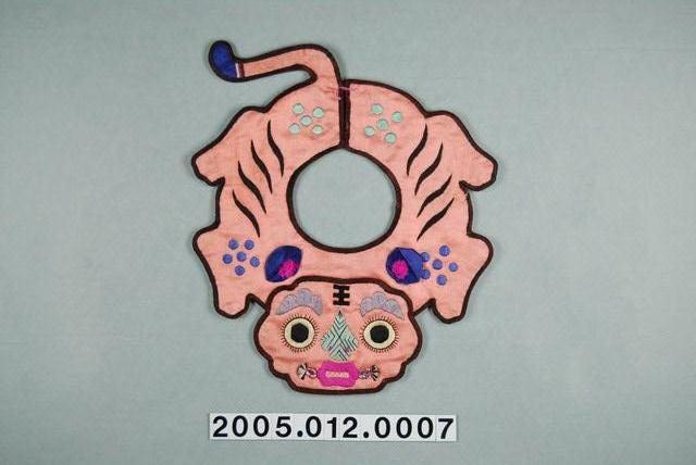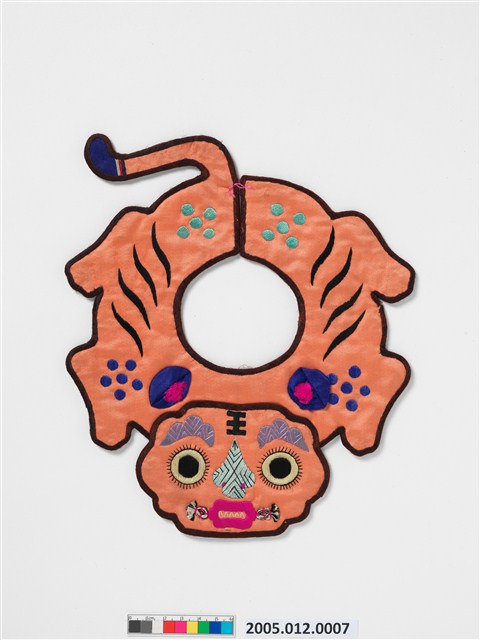 2005.012.0007 橘紅緞地虎形彩繡圍涎