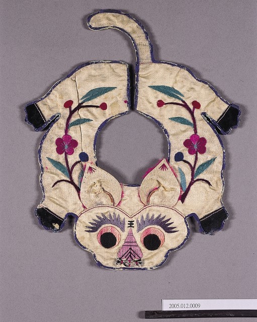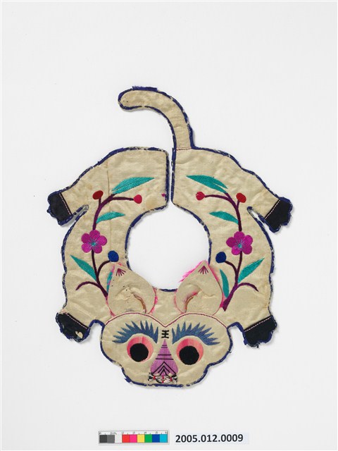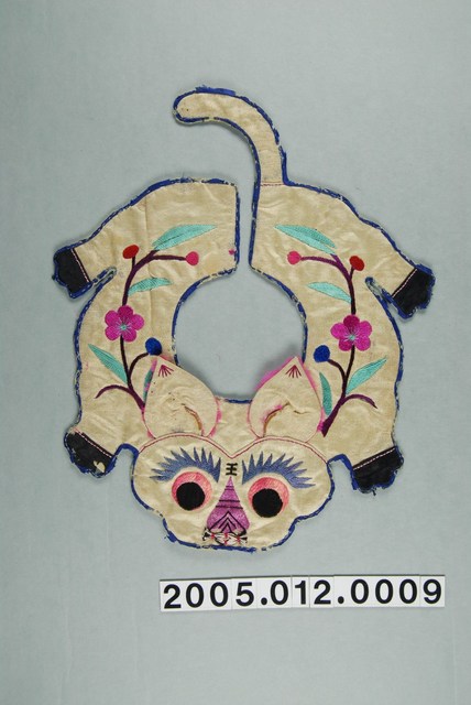 2005.012.0009 米黃緞地虎形彩繡圍涎
