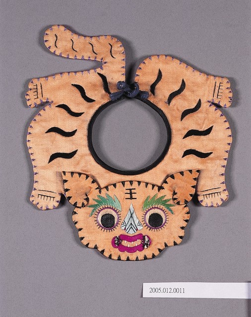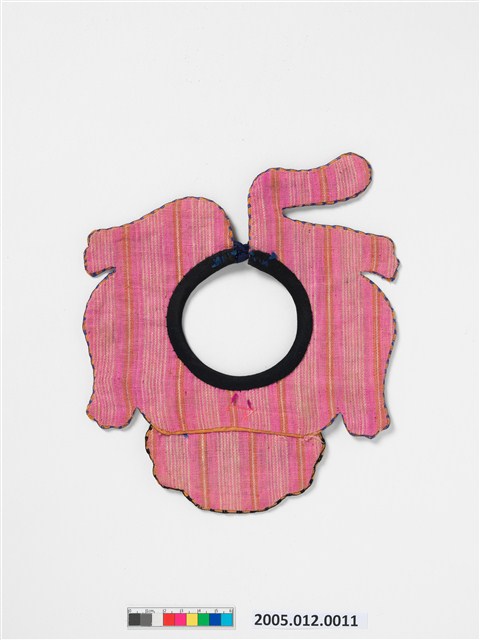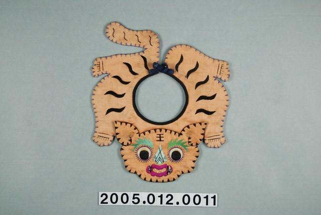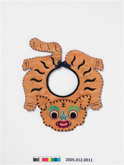 2005.012.0011 橘紅緞地虎形彩繡圍涎