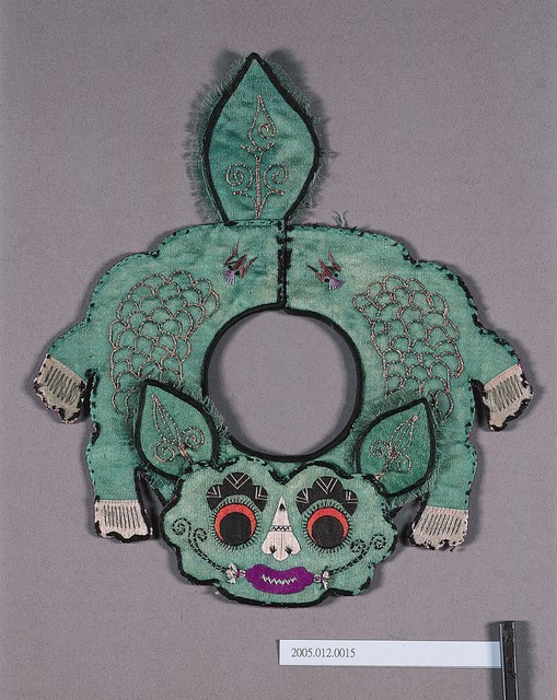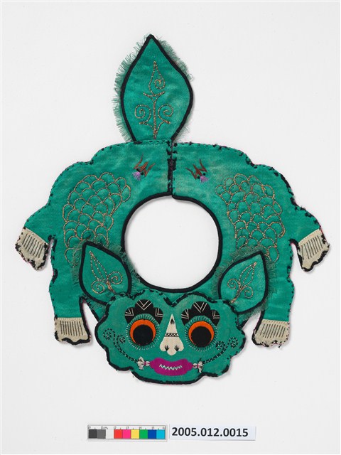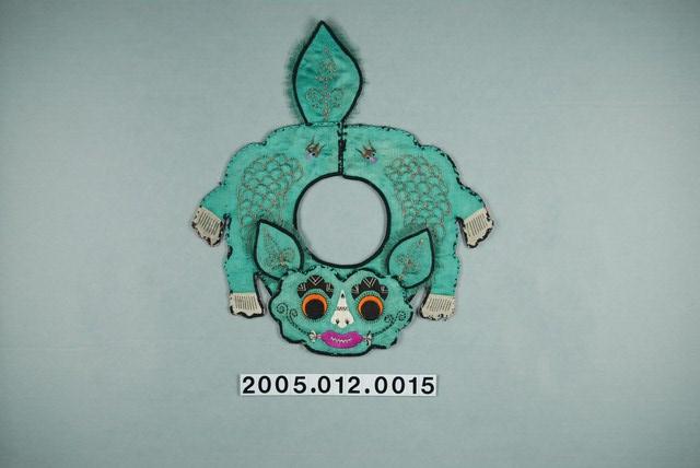2005.012.0015 青綠緞地麒麟彩繡圍涎