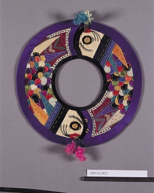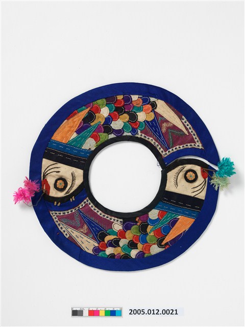 2005.012.0021 彩色絲緞圓形雙魚圍涎