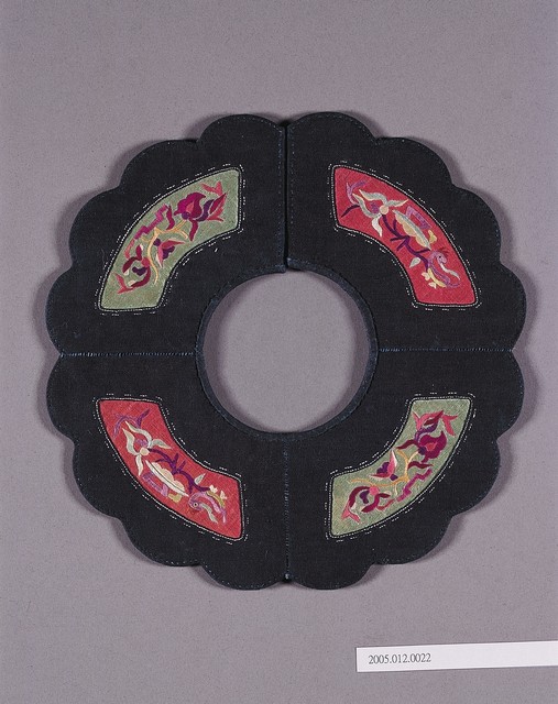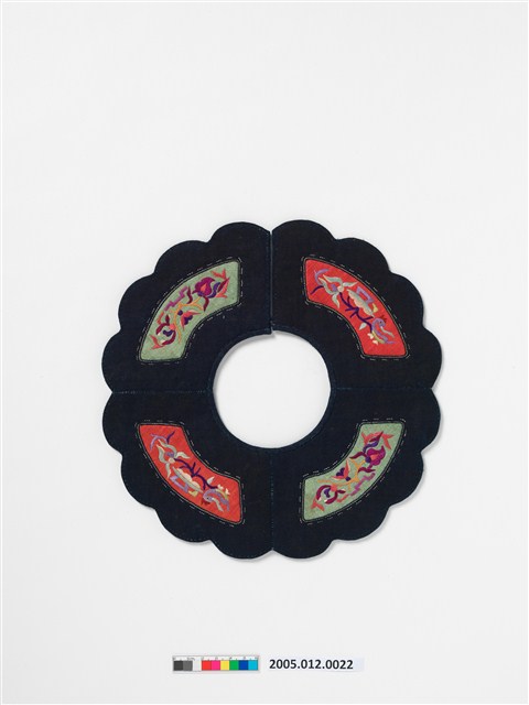 2005.012.0022 黑棉地圓形開光彩繡圍涎