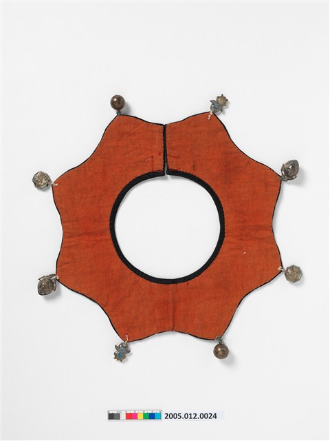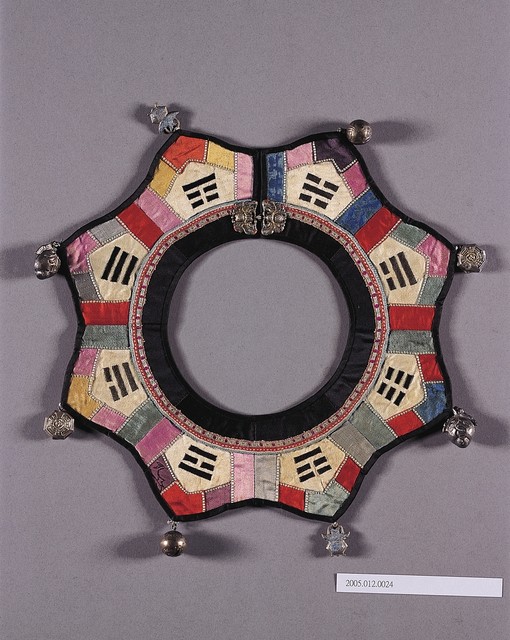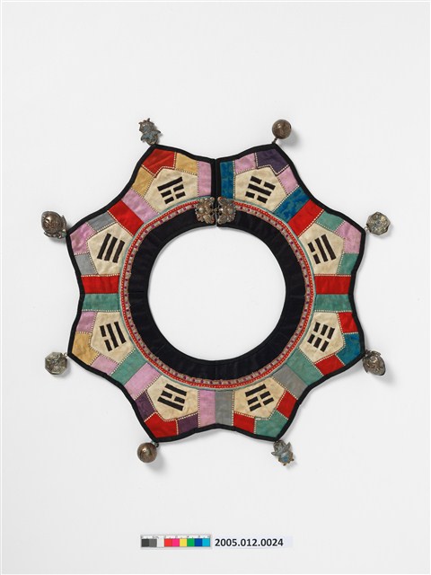2005.012.0024 多彩絲緞拼綴八卦圍涎