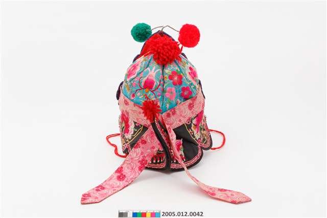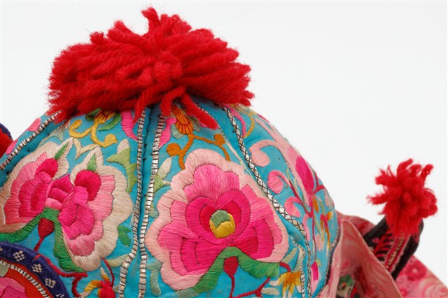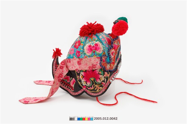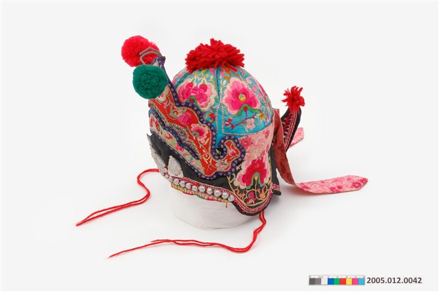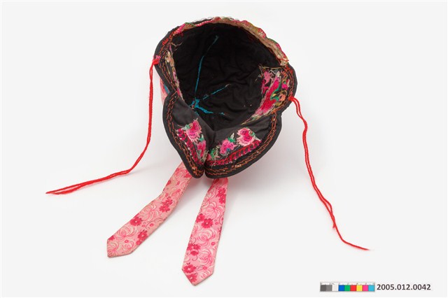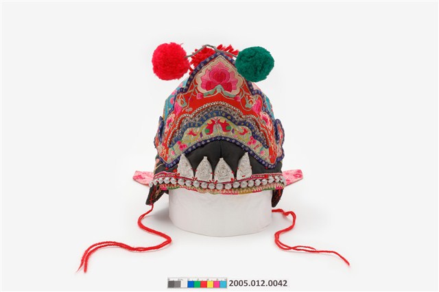 2005.012.0042 黑地彩繡綴銀帽花風帽