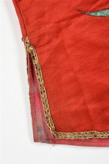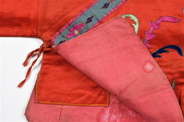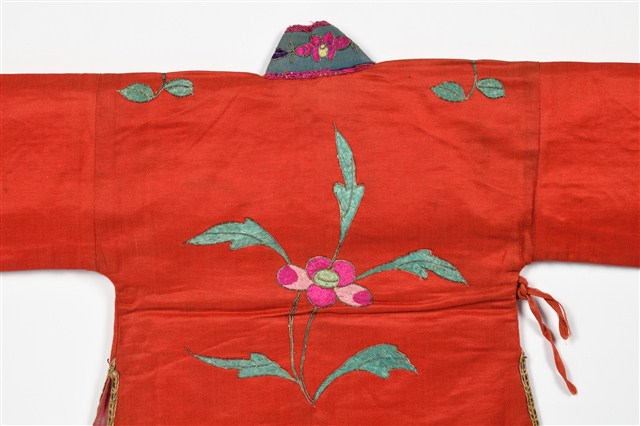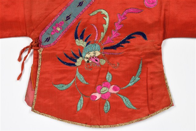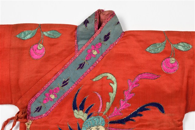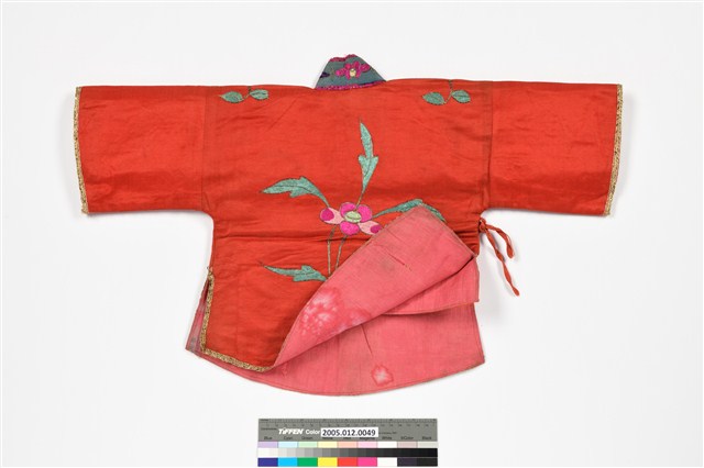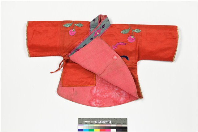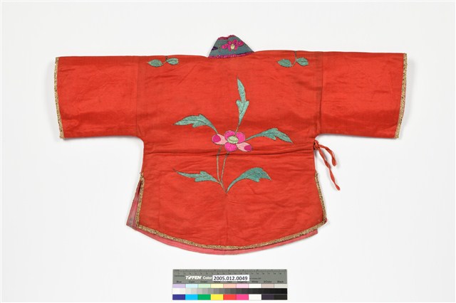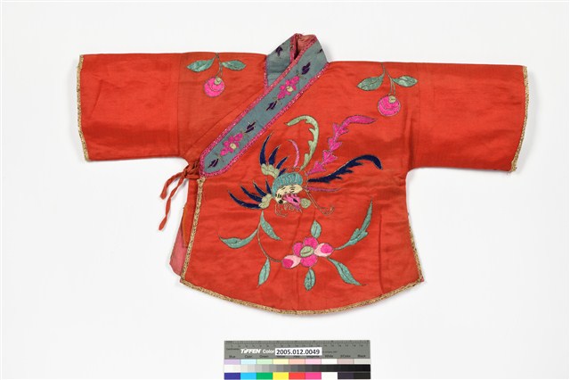 2005.012.0049 紅色絲緞曲領交襟彩繡童衣