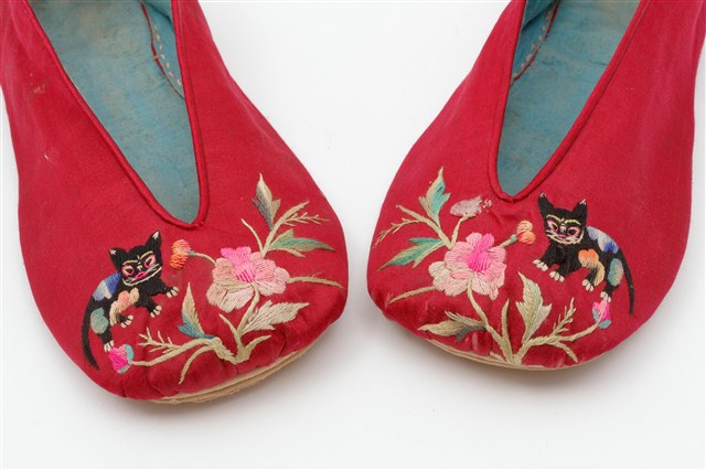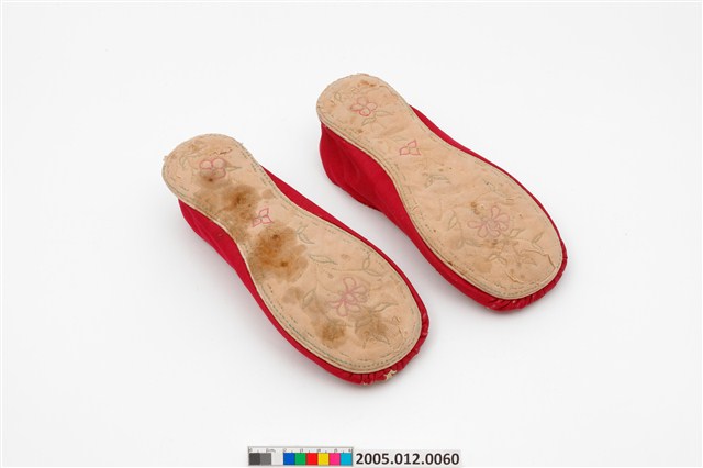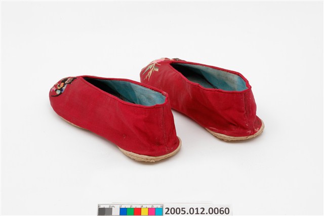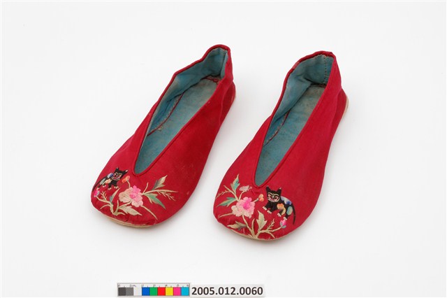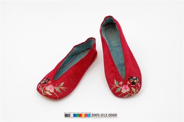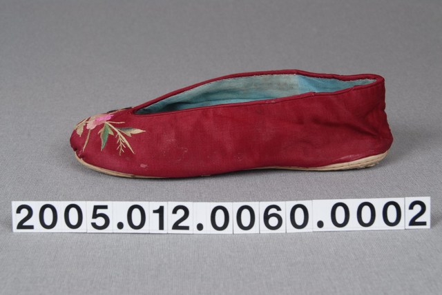 2005.012.0060.0001 紅地繡花平底鞋左腳