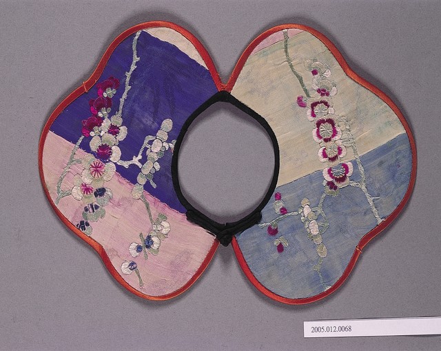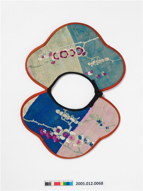 2005.012.0068 絲綢拼接梅花彩繡圍涎