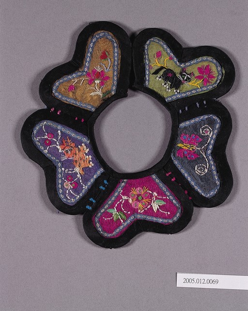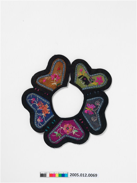 2005.012.0069 五色絲緞心形彩繡圍涎