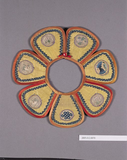 2005.012.0070 淺綠絲質花形彩繡圍涎
