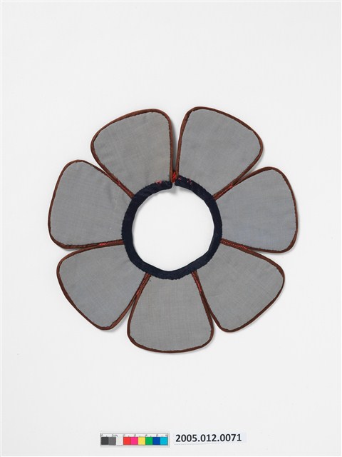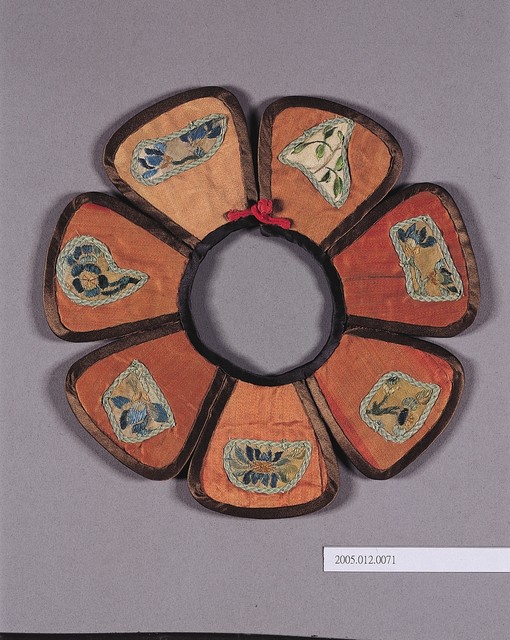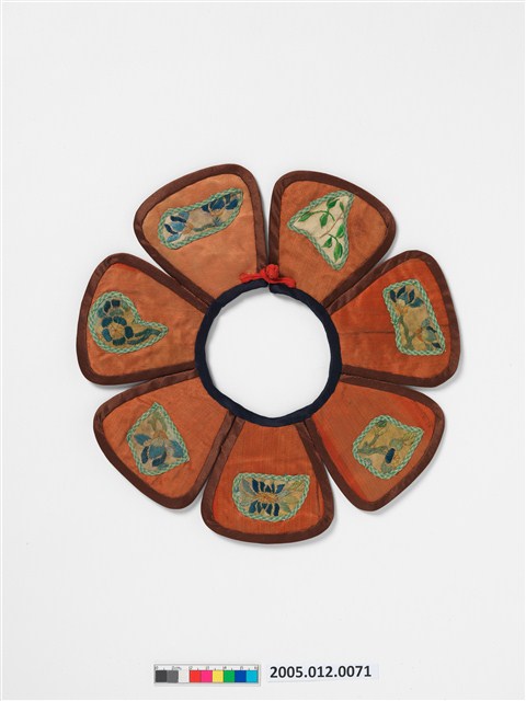2005.012.0071 橘紅絲緞花形彩繡圍涎