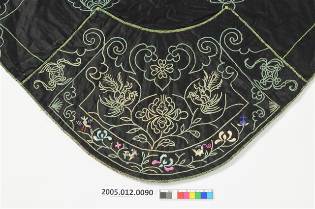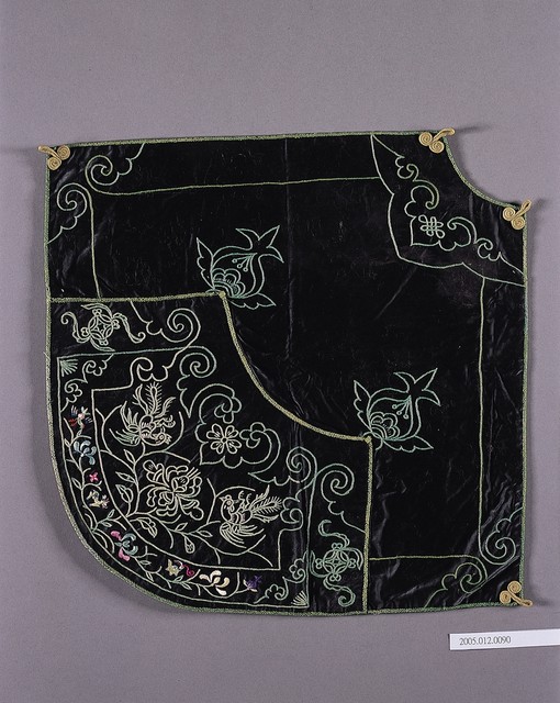 2005.012.0090 黑色地彩繡富貴吉祥紋菱形肚兜