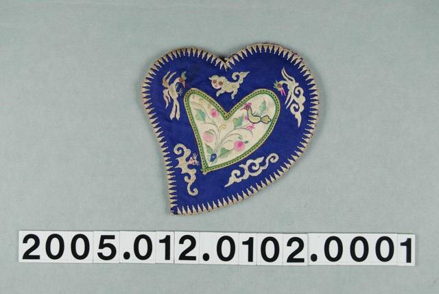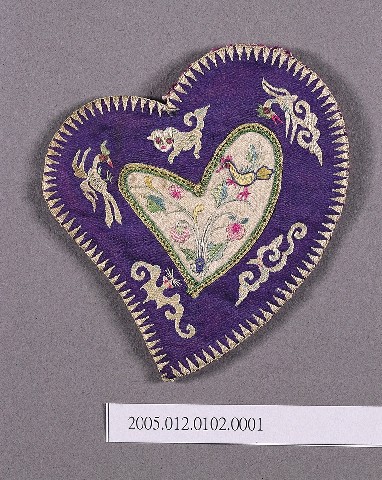 2005.012.0102.0002 紫緞心型錦雞紋右耳罩