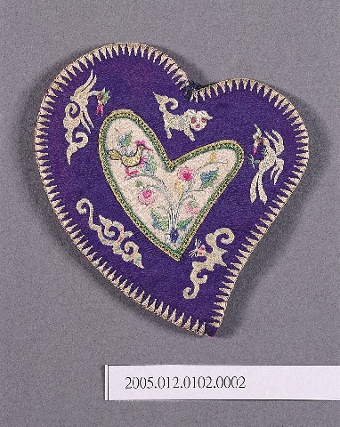 2005.012.0102.0002 紫緞心型錦雞紋右耳罩