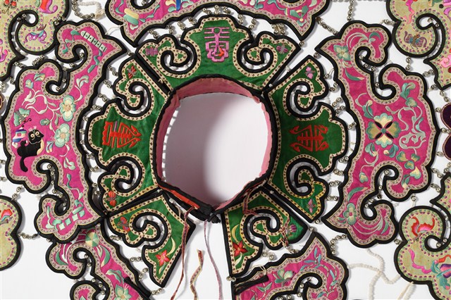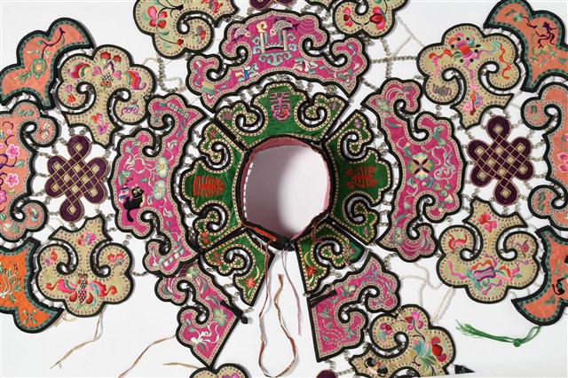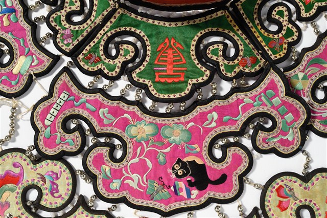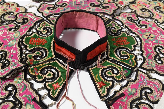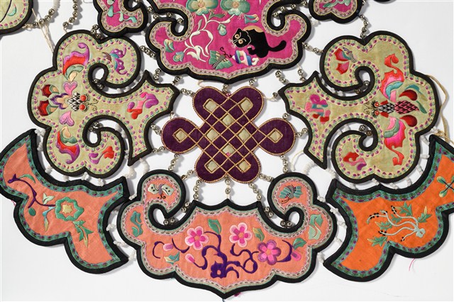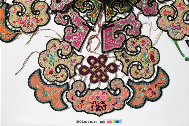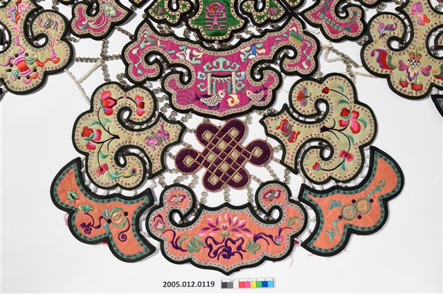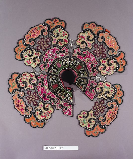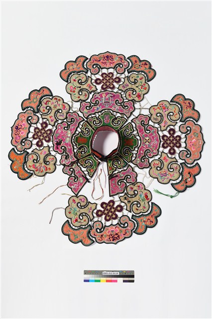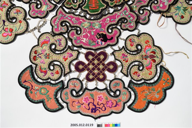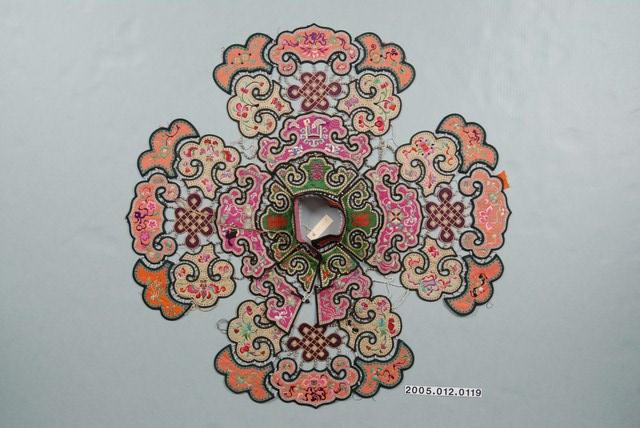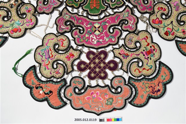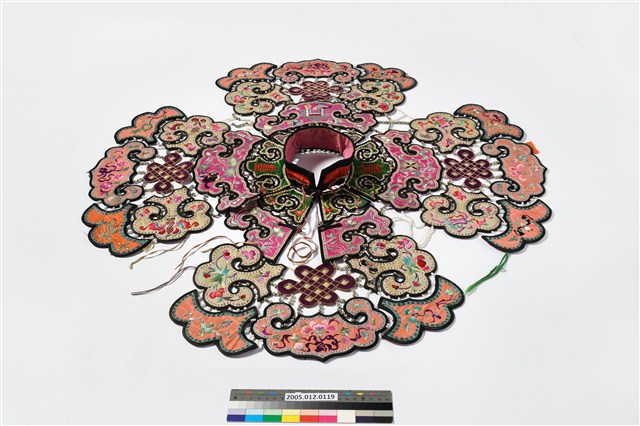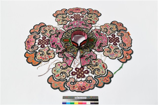 2005.012.0119 多彩絲綢四合如意彩繡雲肩