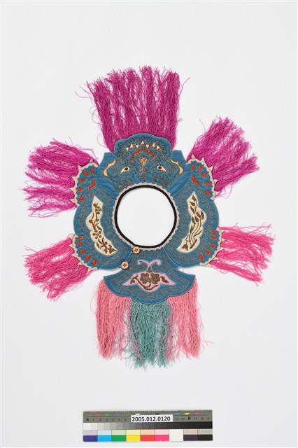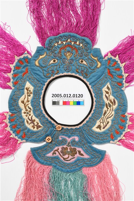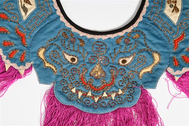 2005.012.0120 青緞地虎形盤金繡圍涎