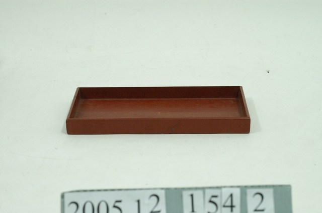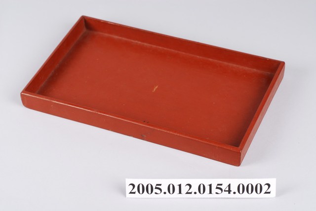 1.本件為黑地描金彩繪花鳥紋漆盒之內托盤,木質胎體,長方形托盤,通身髹朱漆,置於黑地描金彩繪花鳥紋漆盒中,方便收納整理物品。