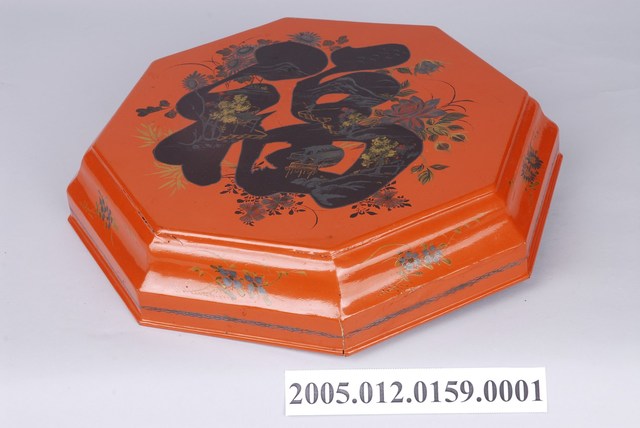 2005.012.0159.0002 朱地福字八角糕餅盒底盤
