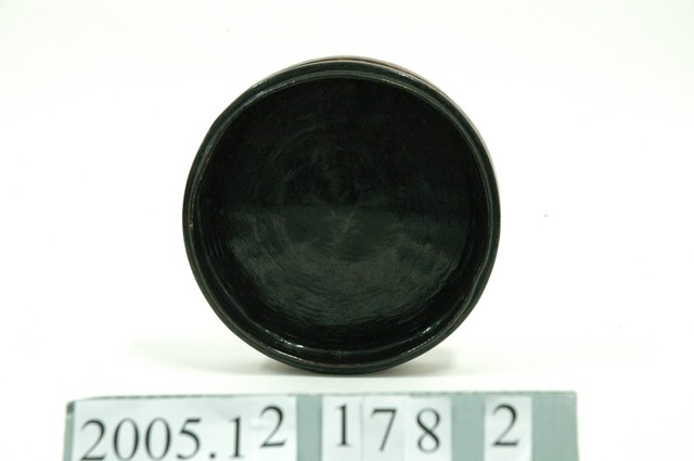 1.本件松鶴竹胎圓漆盒下盒,竹胎,圓形,內層有木製底板並髹黑漆,外層竹編部分則髹朱漆,盒身上下緣以竹片圈起固定,竹片上塗黑漆,並繪上藤蔓紋做為裝飾。2.臺灣早期的漆器多自福建,漆器的價格昂貴,是富貴人家才買得起的貴族用品,民間則將漆器用在年節、祭祀方面,如:待客的菓盒、茶盤,祭祀用的貢盤、神像彩繪等,或作為嫁女兒的嫁妝之用。