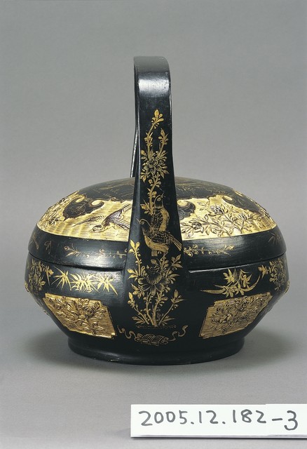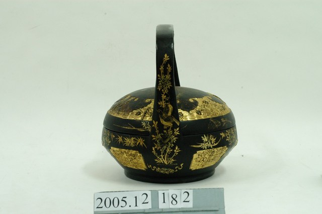 2005.012.0182.0001 黑地人物花卉動物紋提籃上蓋