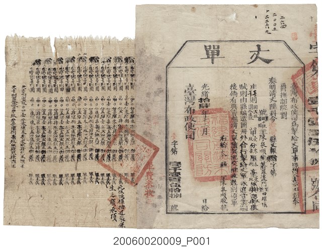 2006.002.0009 光緒14年臺灣布政使司給臺灣縣陳泉順丈單