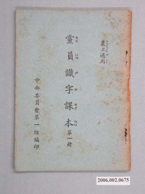 2006.002.0675 中國民黨中央委員會發行《黨員識字課本》第一册