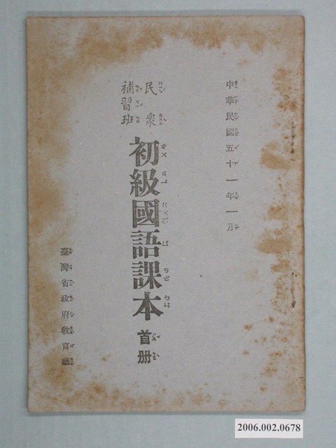 2006.002.0678 臺灣省政府教育廳發行《民眾補習班初級國語課本》首冊